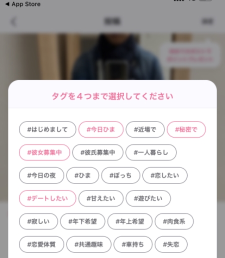 投稿にはハッシュタグを付ける事も出来るので、そのハッシュタグから近いところにいる異性を絞り込むことも可能。